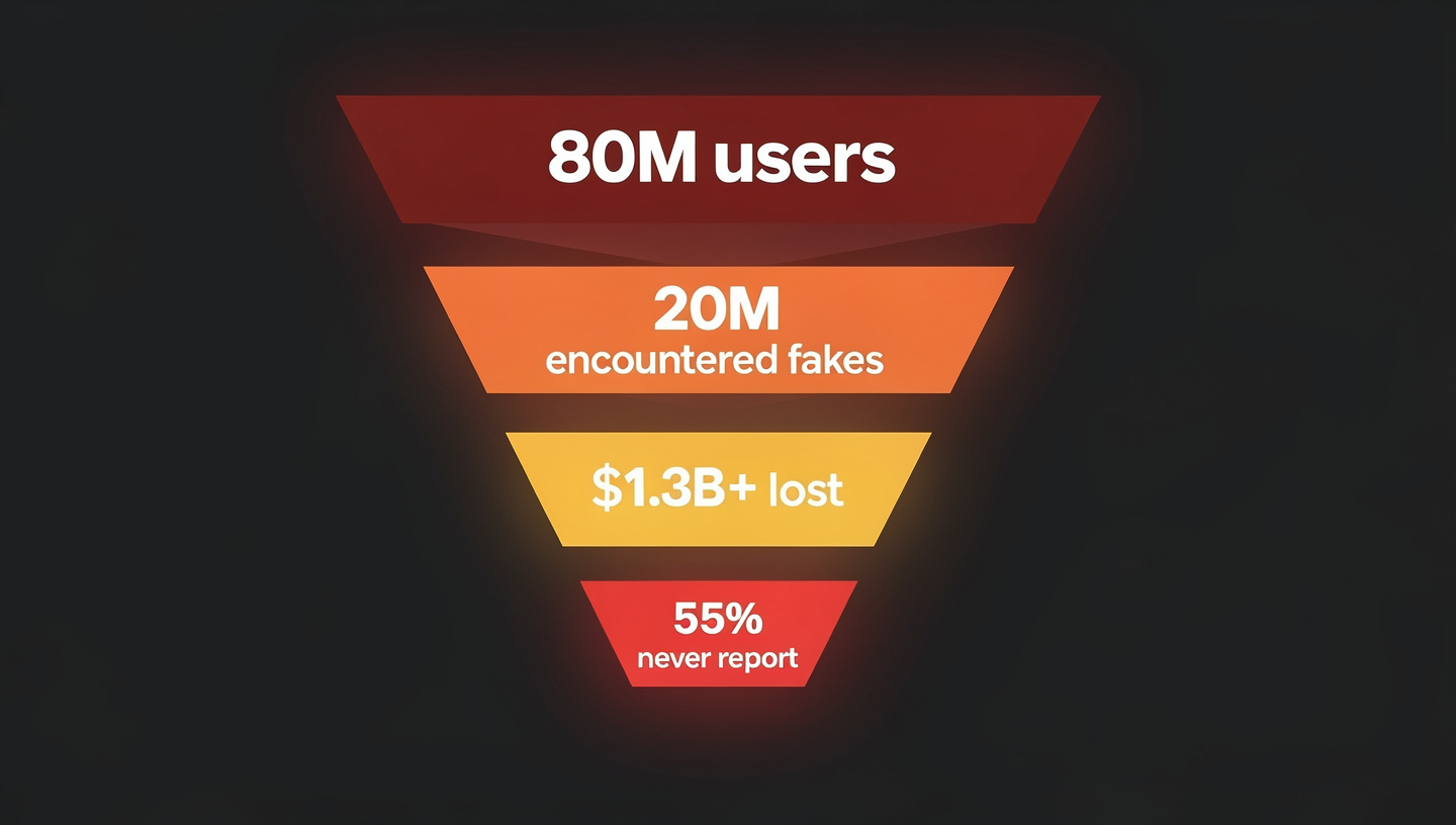| Estimated Americans who’ve encountered fakes (25% of 80M) | ~20 million | Calculated from McAfee + SSRS data |