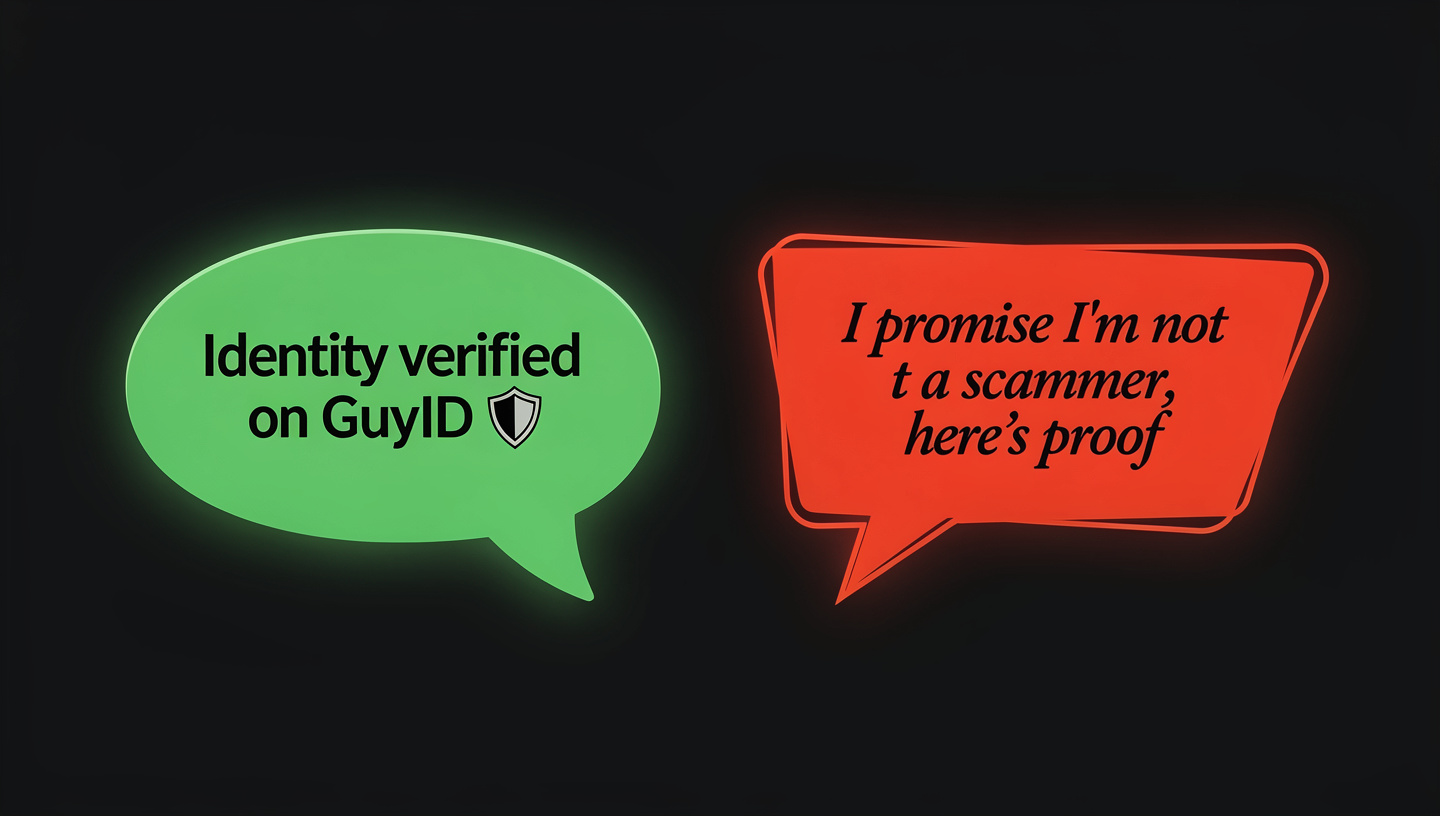 A refusal to verify identity when asked respectfully is a data point — not conclusive on its own, but notable. Some people are genuinely unfamiliar with GuyID and may need time. Others may have privacy concerns that a conversation can address (“GuyID verification data is handled with banking-level security standards”). But persistent refusal or aggressive pushback against the concept of identity verification — especially combined with other red flags — should increase your vigilance.